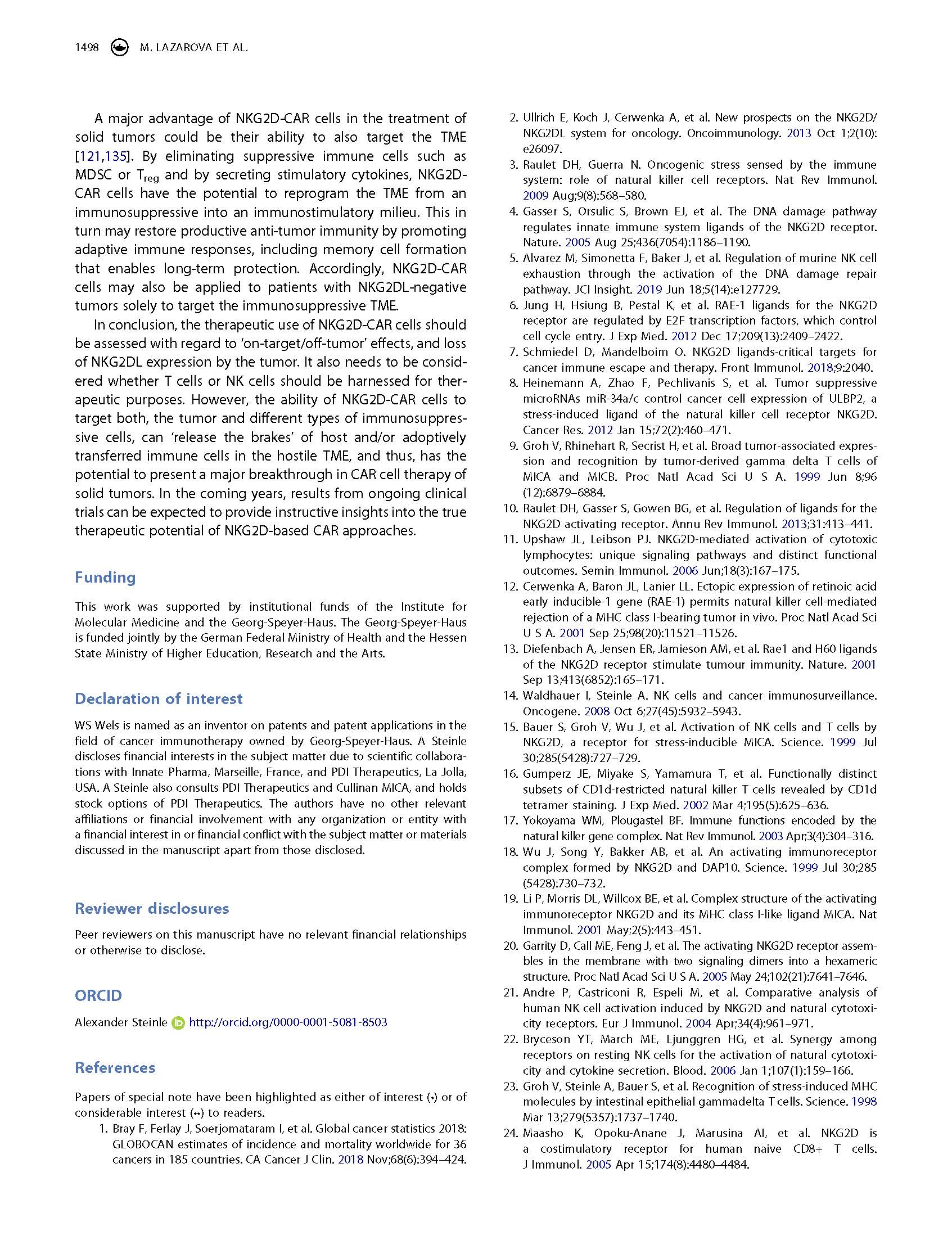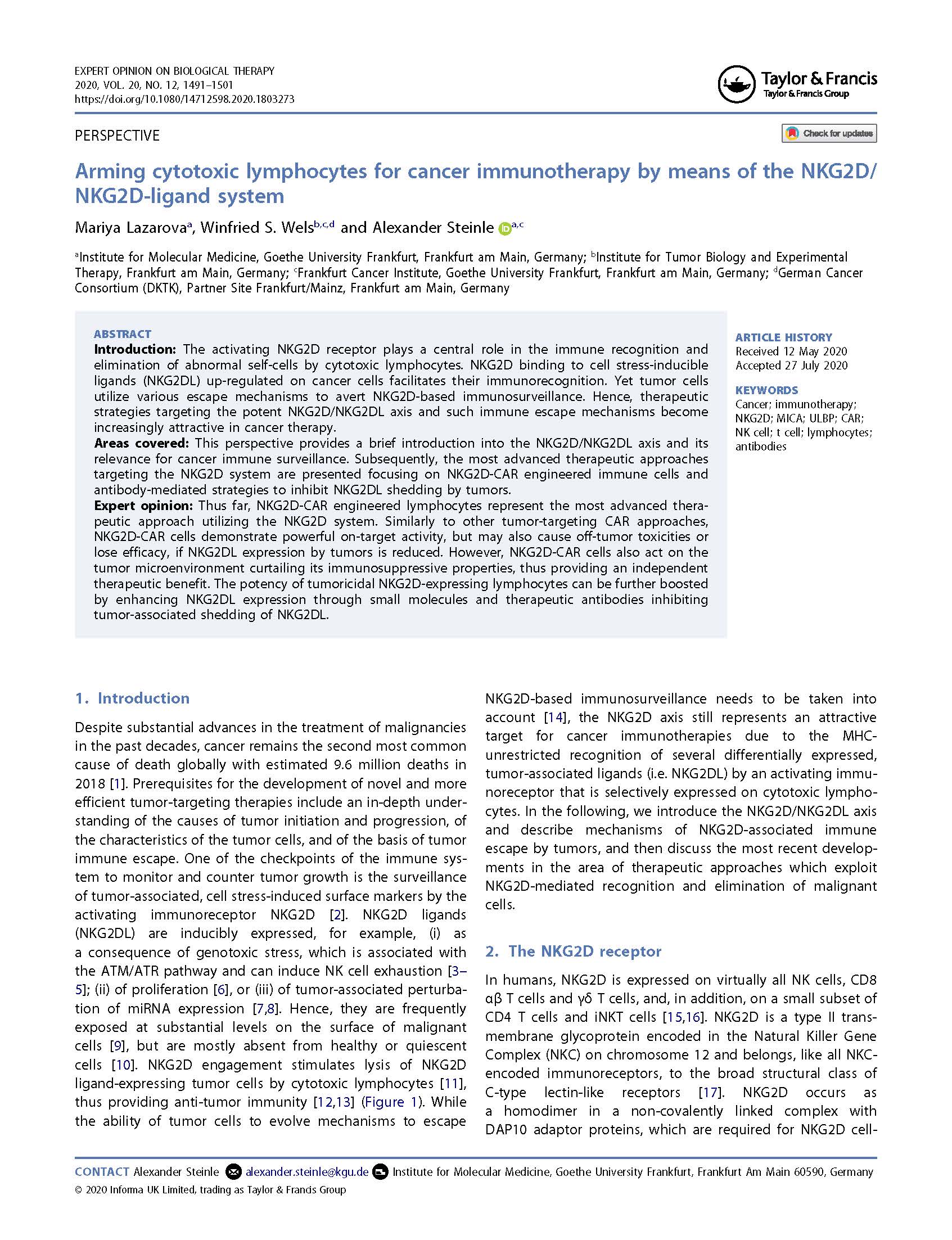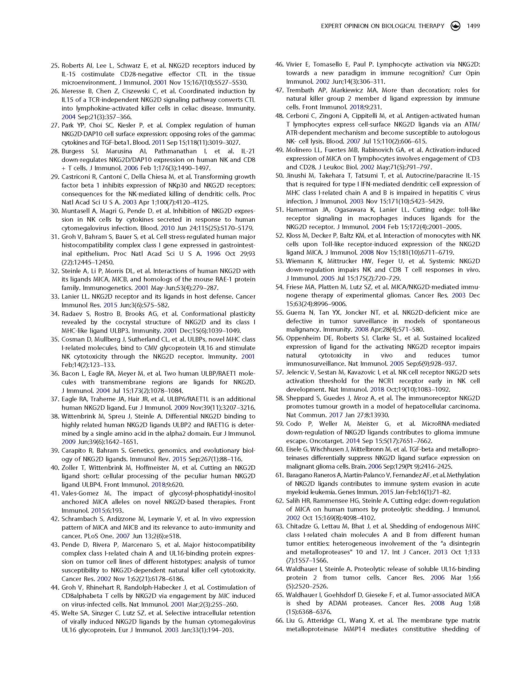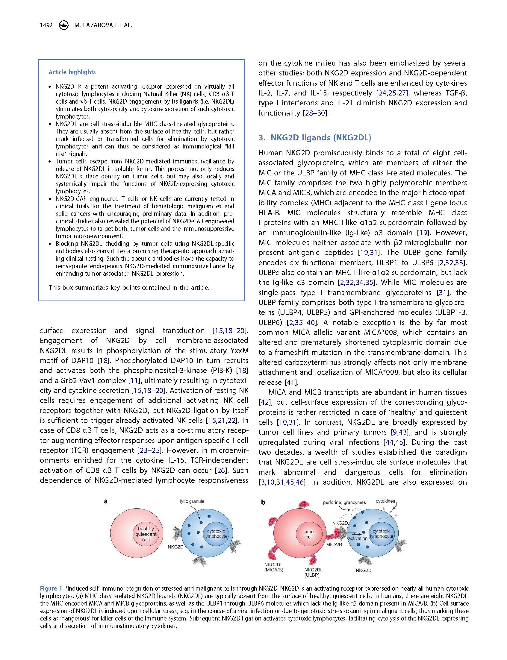 專(zhuān)家意見(jiàn) Arming cytotoxic lymphocytes for cancer immunotherapy by means of the NKG2D/NKG2D ligand system